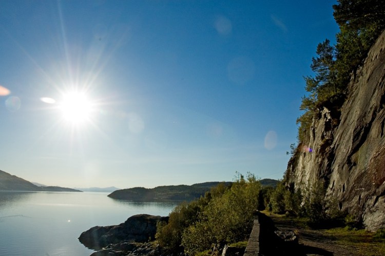 Leirvik och Rombaken (vattnet i bild). Till höger – klippan och utmaningen. Glädjen fick man gratis på köpet.