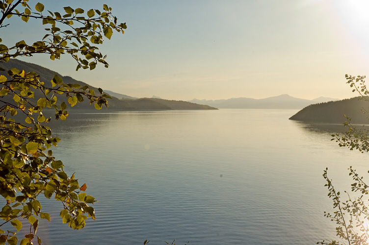 Vi såg tumlare och nog har jag aldrig sett fjorden så stilla. (Narvik, på udden till vänster)