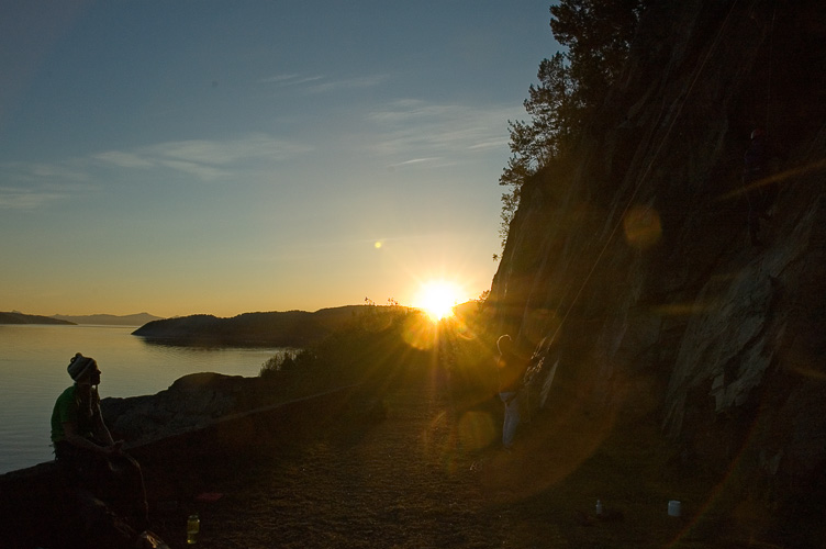 Fredag morgon, frukost vid klippan och vid fjorden. Lågvatten. Utmaningar, friktion och trötta fingrar. Skratt och heja-rop. Vackert.