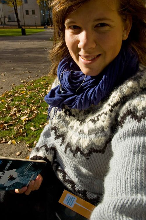 I solen, bredvid domkyrkan. En bok och en jämn ström av människor som passera. Hela tiden på väg.