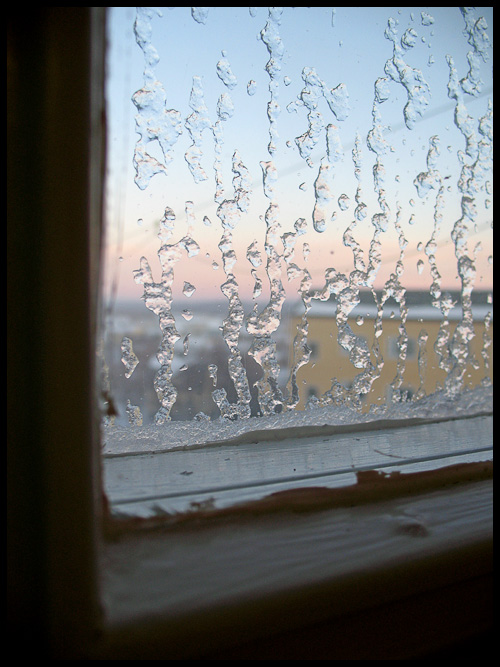 Kaffebryggaren låter som ett litet åskväder där de står och mullrar och frustar. Solen trillar ner bakom horisonten, bakom en mulen novemberhimmel. Klockan har inte passerat 15 men ändå kryper sig dunklet in.