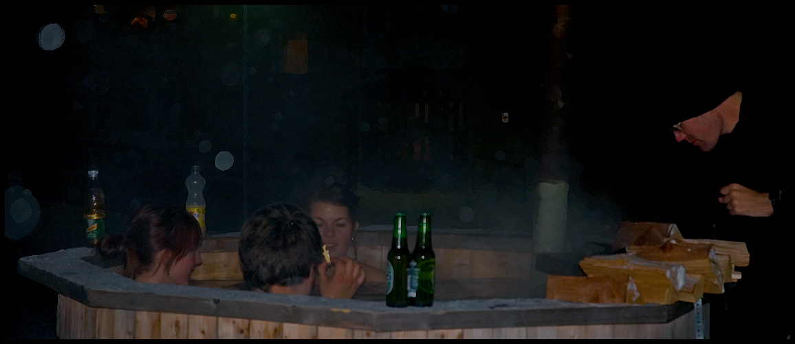 Tunnan gick varm igår minsann. Vedklabbe efter klabbe försvann. Snön börja falla och förgyllde tillfället. Promt skulle man ut i snön, helt fantastiskt, men det finaste av allt – mellan gammal snö och nyfallen upptäckte jag minsann is. Jojo, skärsår på ben och fötter. Kvällen fullföljdes nedbäddad i min alldeles egna dubbelsäng med film och te. Ja, så gjorde jag den här med