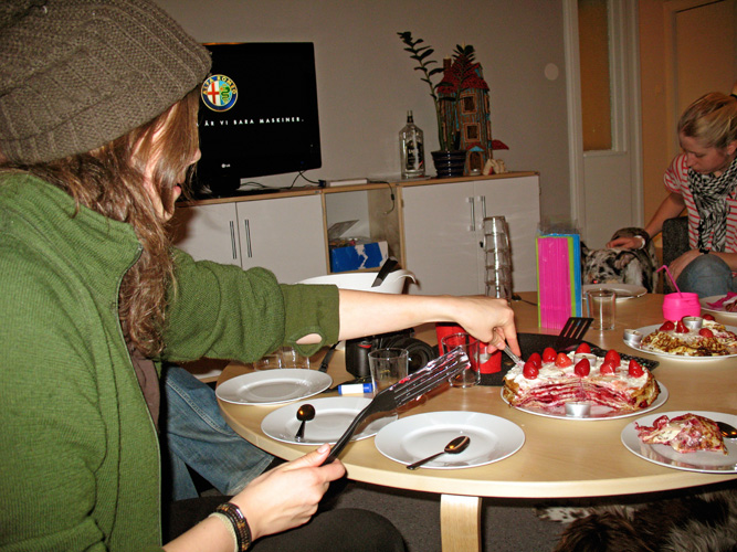Så gött med tårta! Du kan få komma hit och äta kakor någon dag om du vill. Jag bakar hela tiden så det är alltid fullt.. ibland i skafferiet men oftast i magen. Svara