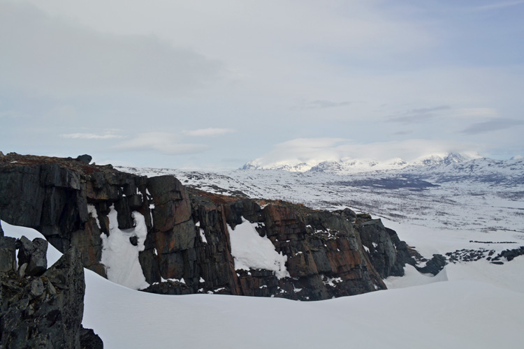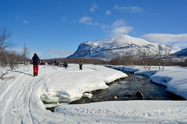 Vackra Giron i bakgrunden och jokken som från Norska sidan rinner ut mot Abiskojaure, vidare till Torneträsk och ut i Östersjön via Torneälven.