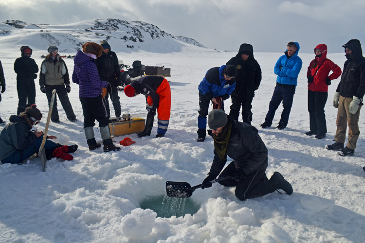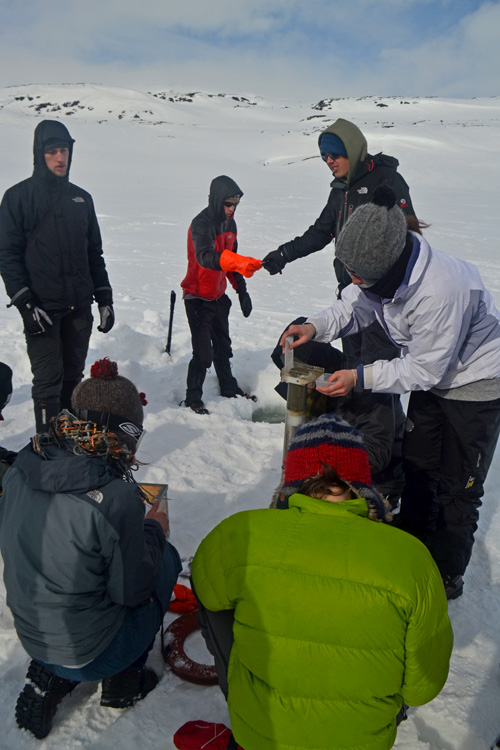 Så dagen därpå fick vi sällskap uppe vid sjön bredvid gruvan av några internationella studenter från kursen arktisk geologi.