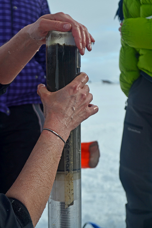 Provtagning av bottensediment i sjön, den praktiska delen av mitt examensarbete.