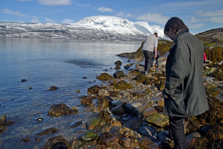 Vi passera gränsen, på väg. Iväg för att se oss lite omkring. Paus vid en fjord och jag, jag kan strosa omkring på stränder som denna länge.