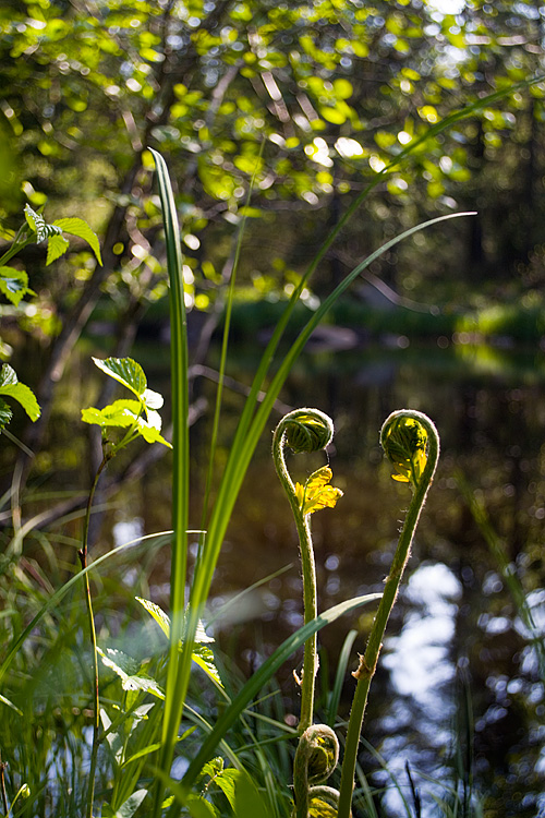 Intill en vacker och bitvis meandrande å slog vi oss ner till glädje för myggen. Frukost. I skogen.