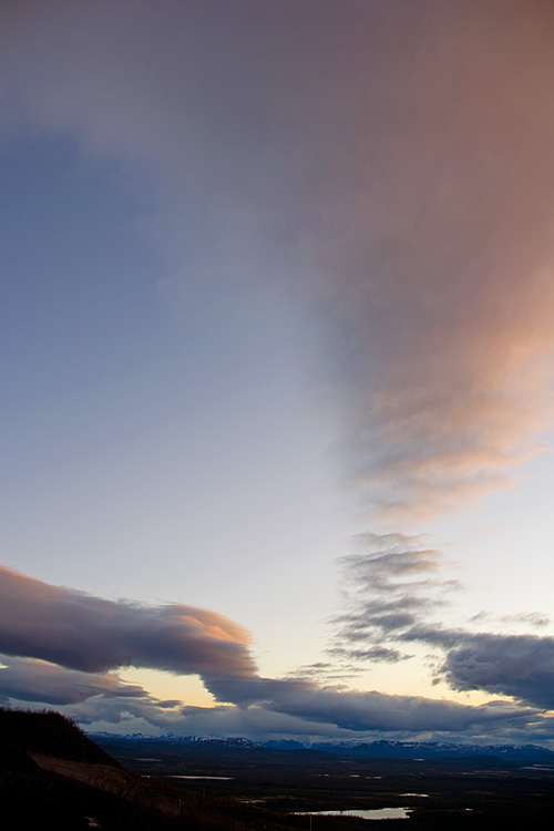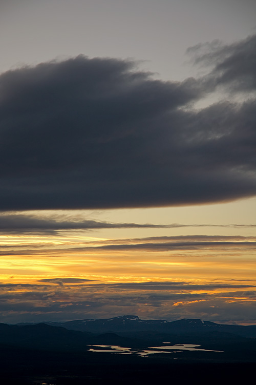 Ibland behöver man vädra, låta tankarna få sväva fritt. Utrymme. Då är det vackert att traska upp på berget, runda toppen och så ner på andra sidan där berget skymmer stan. Där kan man sitta på sluttningarna och blicka ut mot bergen som aldrig tycks ta slut och se solen antingen sjunka eller stiga utan att röra vid horisonten. Jag kan inte få nog av midnattssolens tindrande strålar som leker i håret som yr i vinden eller att ligga utsträckt i kråkbärsriset och bara vara, nattetid.