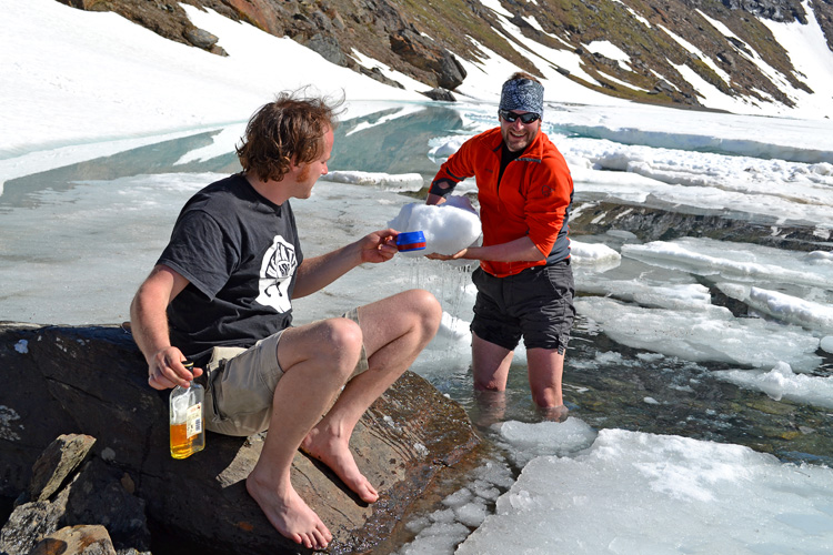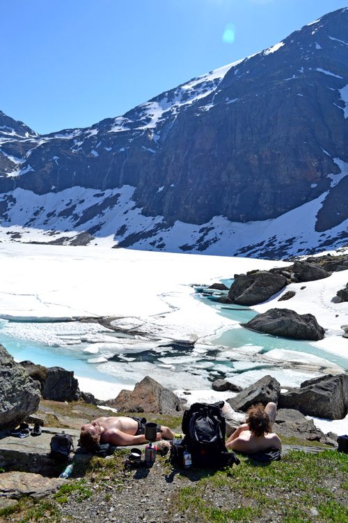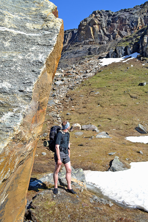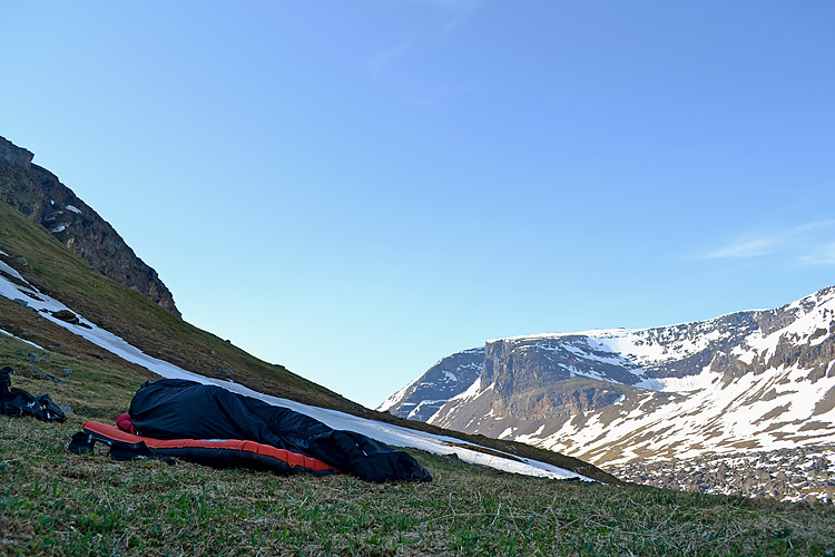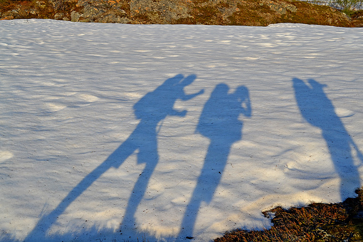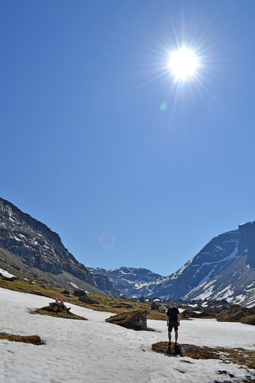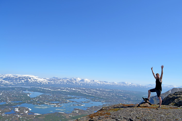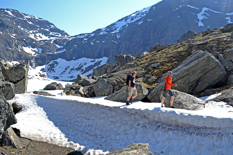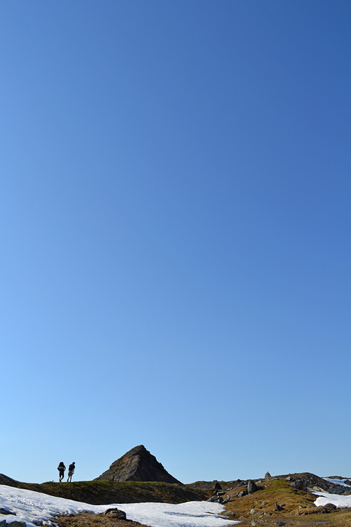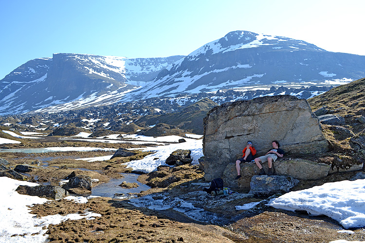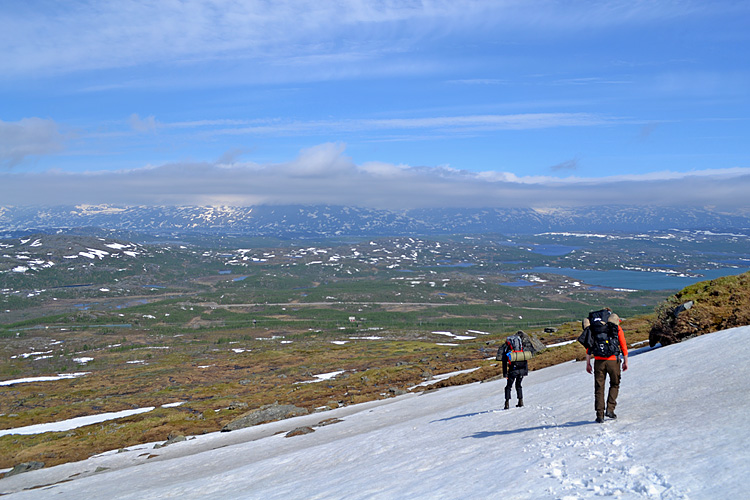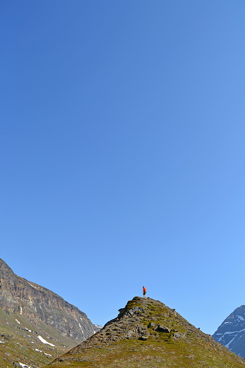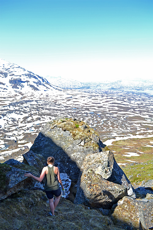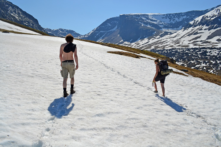 Men när vi med varma kängor och kortbyxor uppåt, lämna de gröna björkdungar och fortsatte över snöfällt kändes det inte mer än rätt att vara just här just nu.