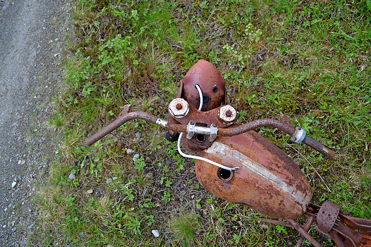 Tar paus, precis innan grusvägen tar vid. Får sällskap till en rykande kopp kaffe.