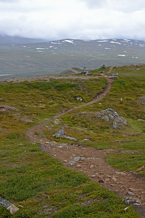 Men så tar trädgränsen vid och stigen slingrar sig genom landskapet. Det är vackert, men det är inte samma känsla som skänks där på vidderna.