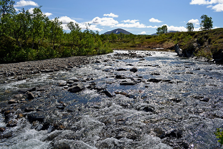 Genom instängande ängsbjörkskogar med sin grönska upp mot hedmarkerna och kalfjället i sikte.