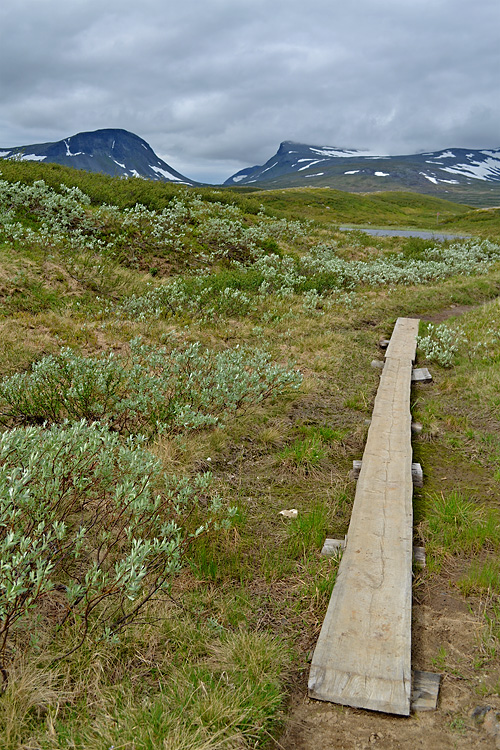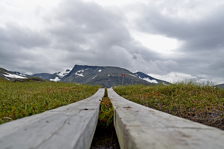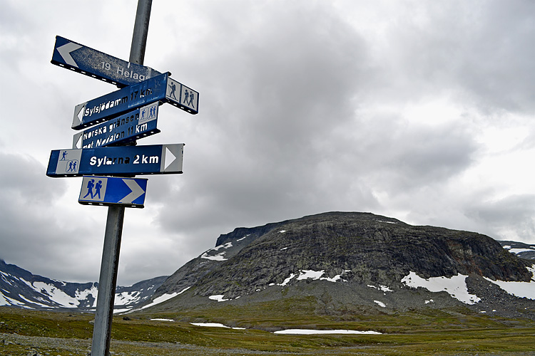 Stigningen tar vid och snart står jag där och blickar upp mot Syltopparna som rör vid molnen.