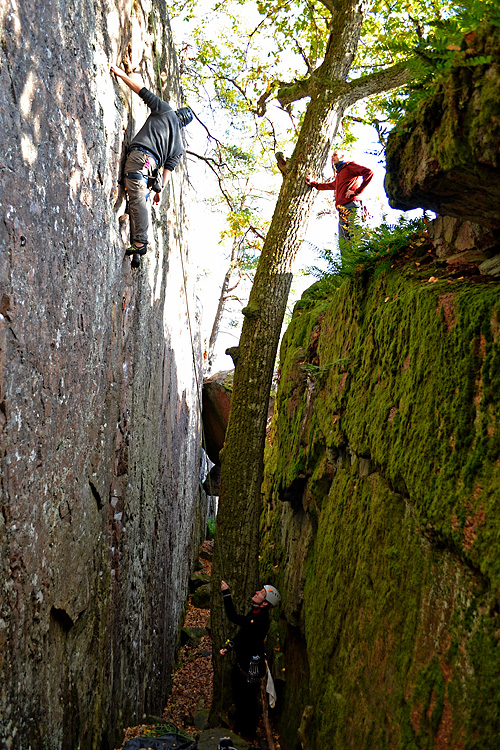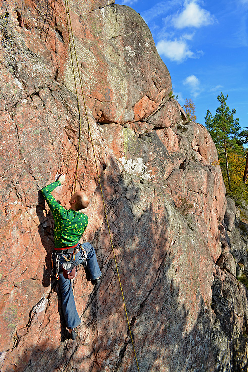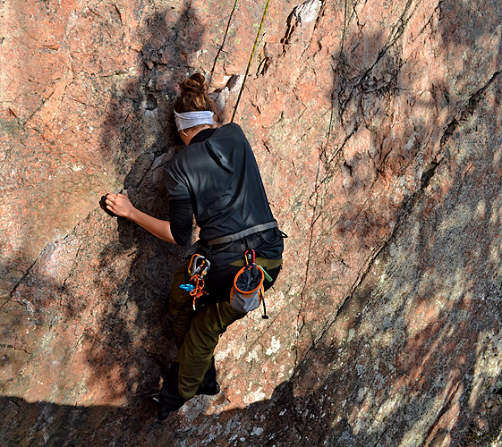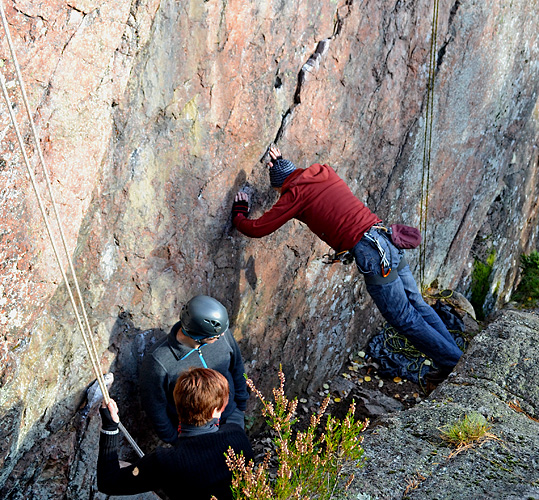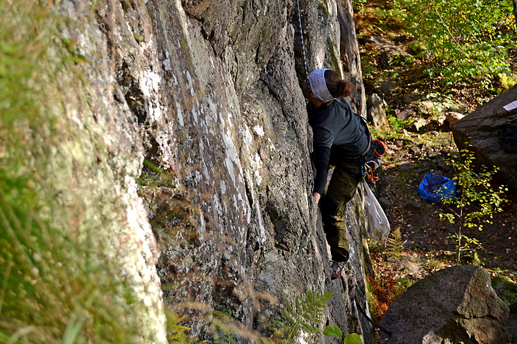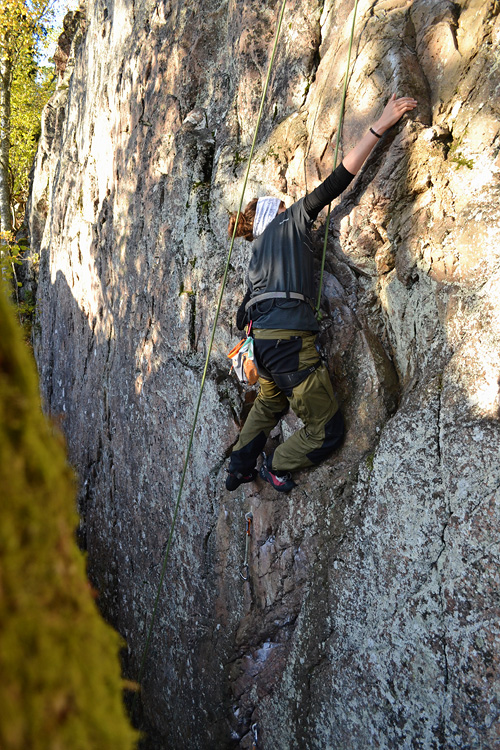 Vi anländer Ågelsjön och den söta doften av förmultnande löv finns överallt. Det är höst runt omkring oss men solskenet lämnar en doft av sommar, klipporna är kalla men alltid lika lockande. Vi har tagit oss upp till Surfväggen, det var länge sen jag var här senast…