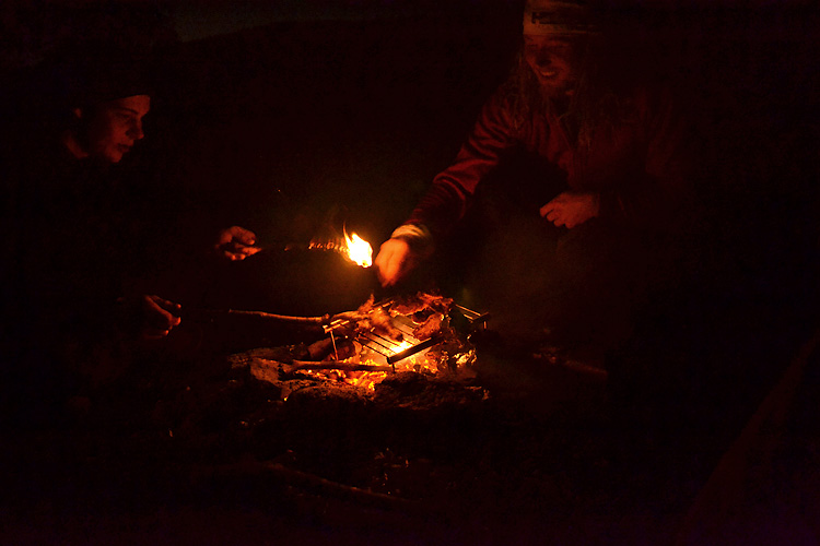 Brasan vid klippan strax ovan vattnet, skogen bakom oss och himlens alla tindrande stjärnor över oss.