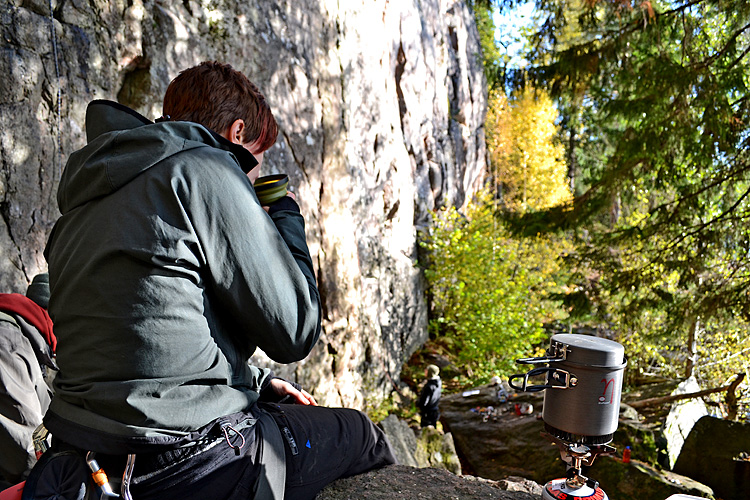 Det är skönt att få känna på sten igen, men däremellan är det minst lika fint att ta en kopp kaffe och njuta av utsikterna.