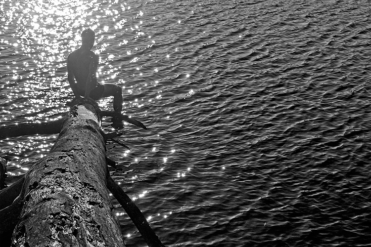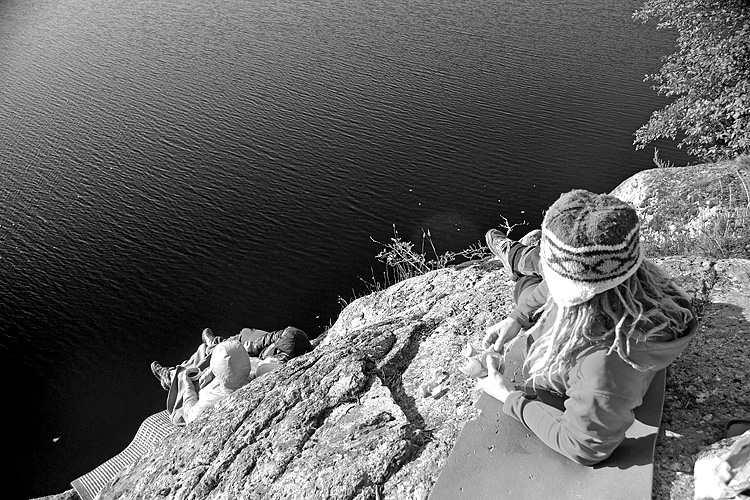 Länge sitter vi i solskenet på klippan, högt över vattenytan och pratar.