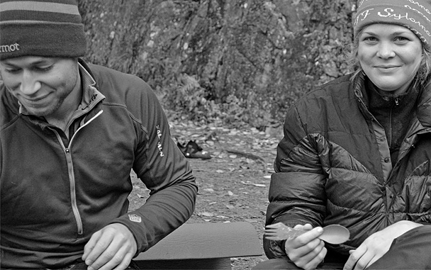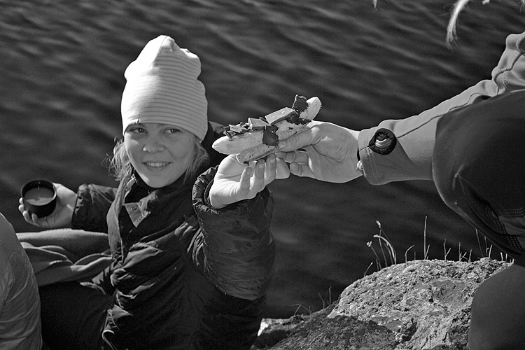 När skymningen lägger sig packar vi ihop, går vidare. Slår läger, tänder en eld och njuter av livet.