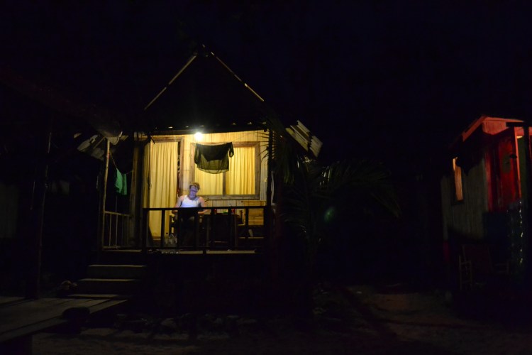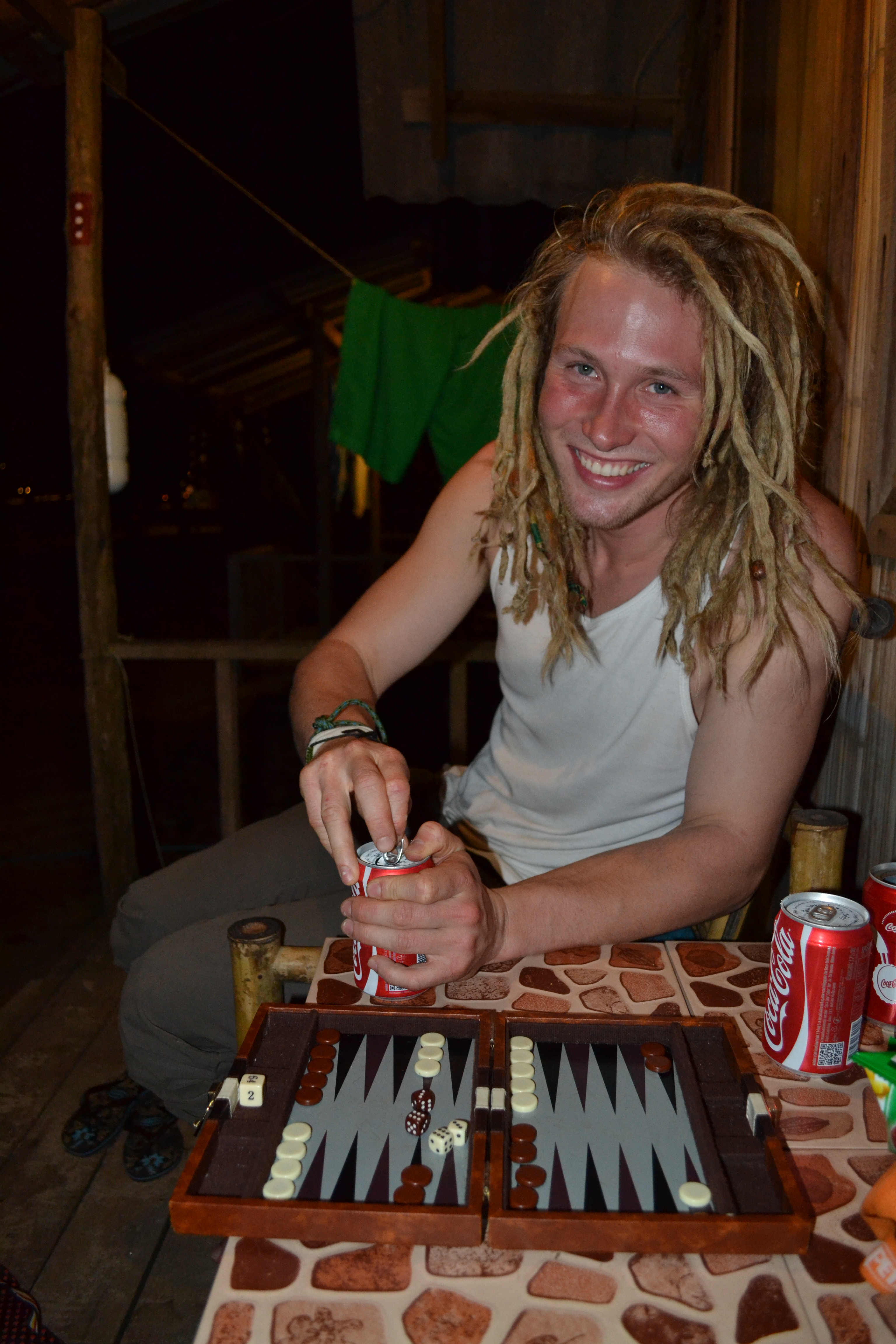 Att man kan bli så glad för en kall cola, chips som (tyvärr) smaka någonting i still med sushi, eller sjögräs eller räka. Men det är fint med någonting svalt även när kvällen är varm och i taket springer gecko-ödlor. Vågorna slutar aldrig att rulla in även när det är ebb. Men kanske kommer även glädjen från när vi gick med tom plånbok från det lilla samhället och han med sina nya och dyrare flippflopp än mina.