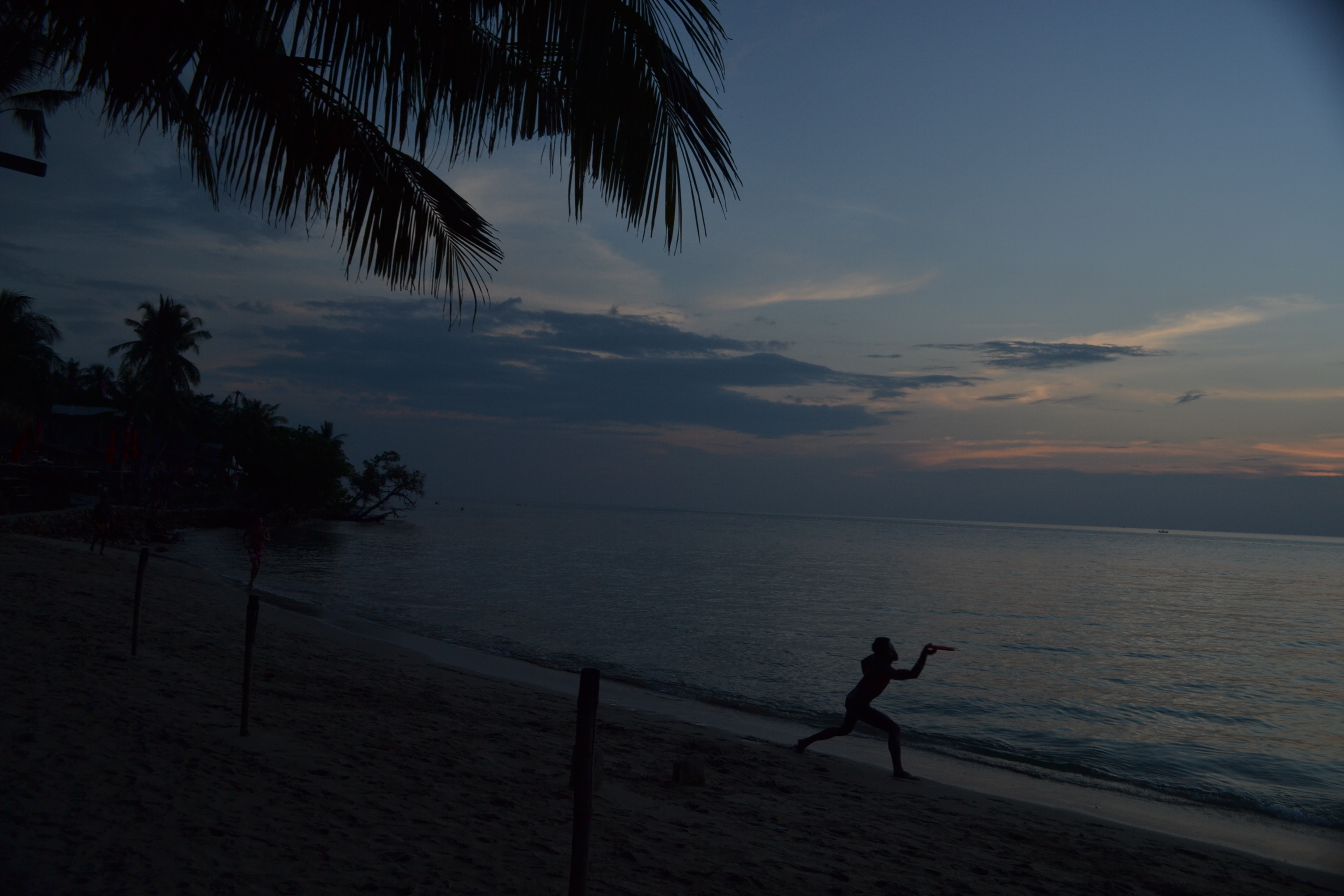 Vi bor på Siam Hut, varje kväll visas två filmer med Thailändsk textning på restaurangen med havet som granne och var och varannan kväll är det fest någonstans på beachen. Fint med långa frukostar i skuggan med vågornas svallande och brisen från havet. Bara fem minuters promenad härifrån, utefter huvudvägen söder ut finns ett litet samhälle uppbyggt utefter vägen.