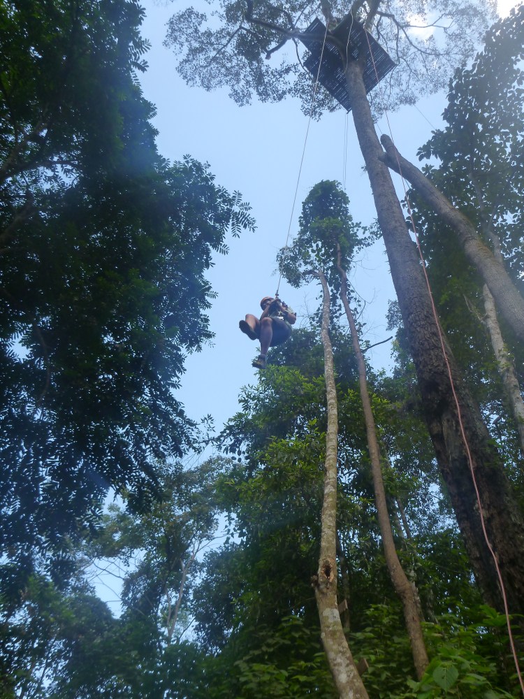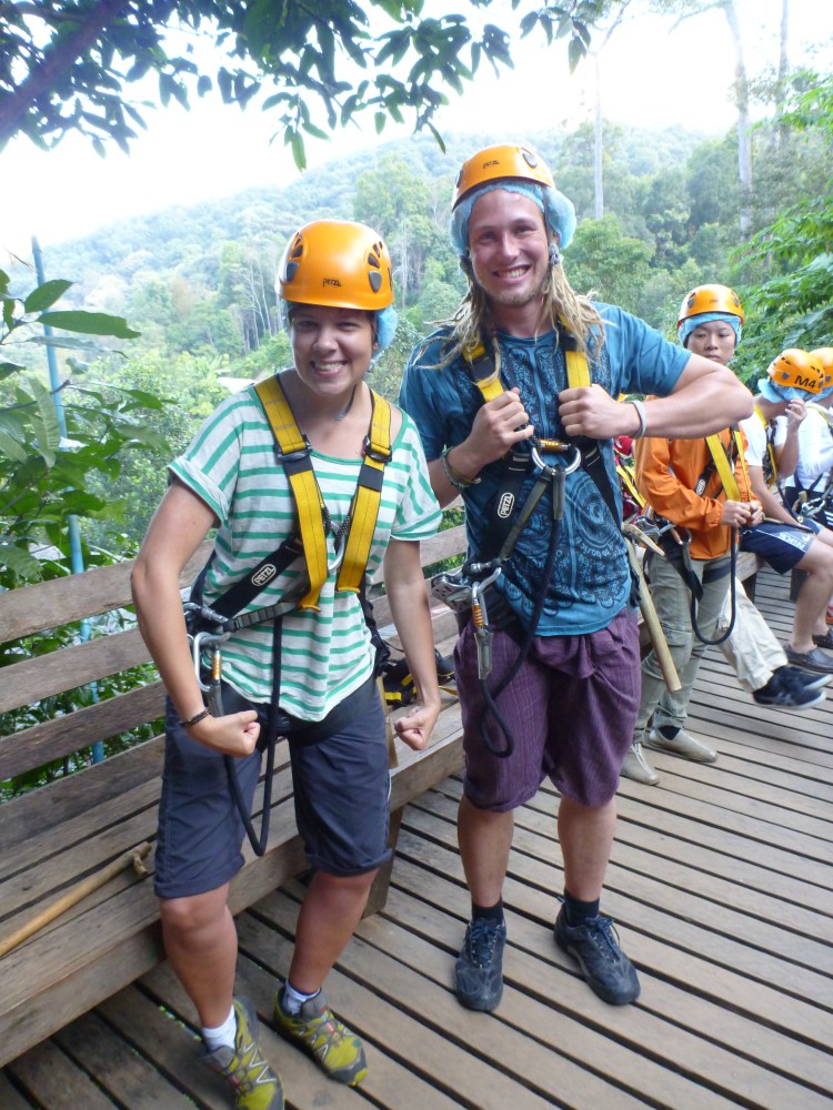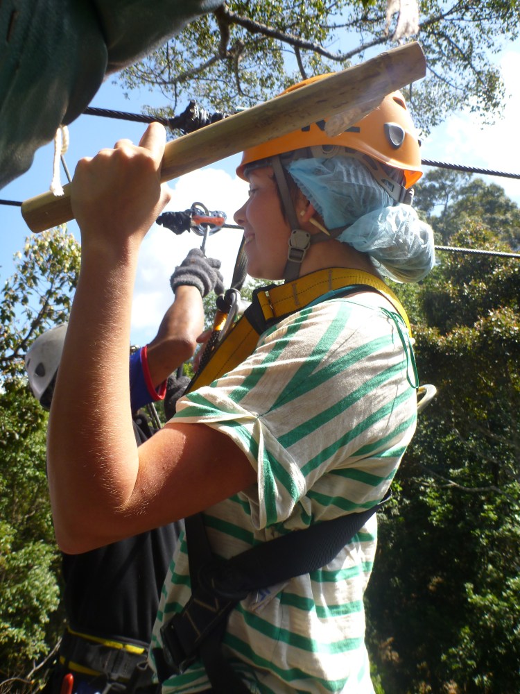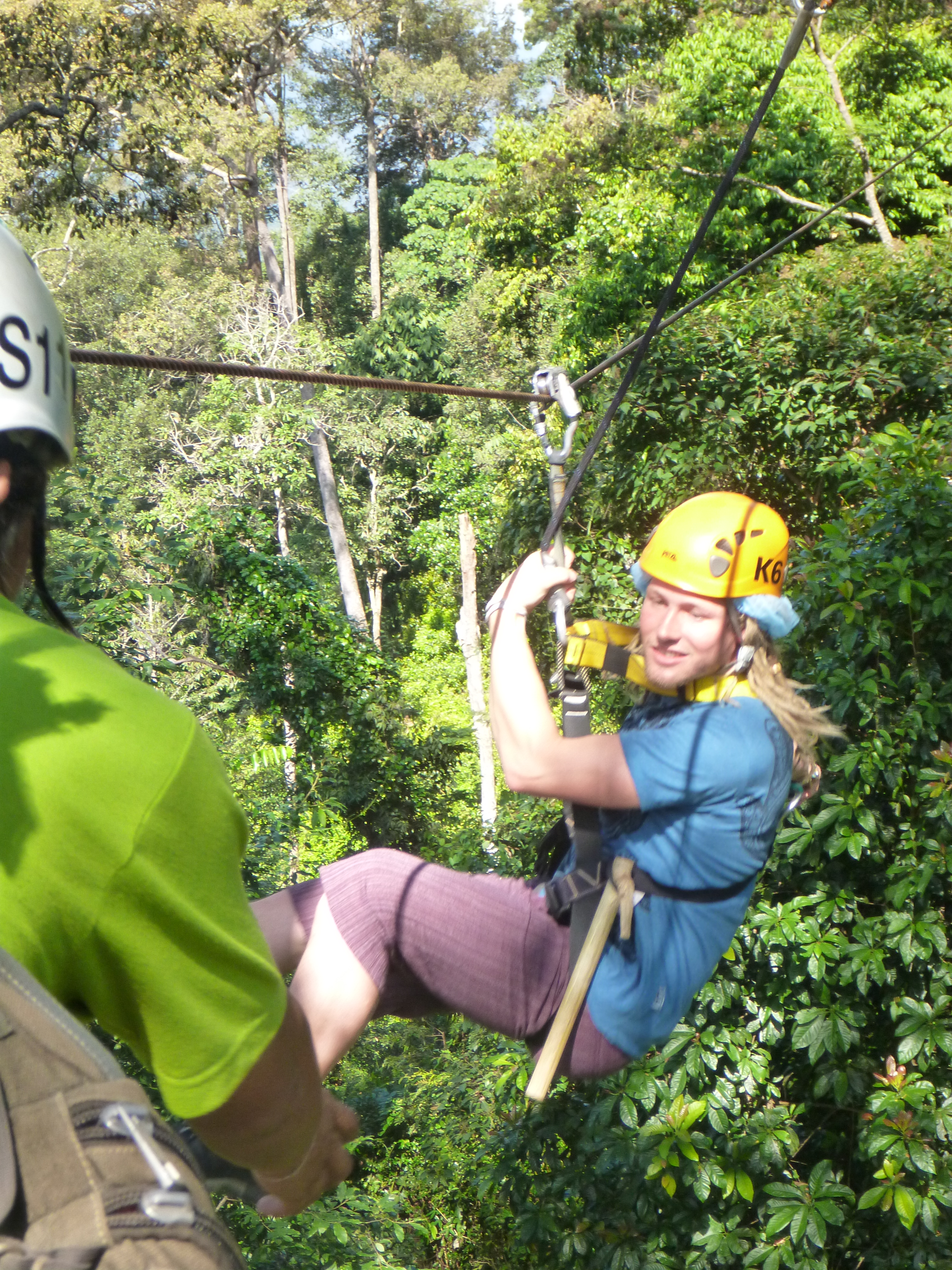 Upp hämtade vid hotellet tidigt om morgonen och efter ett par till stopp på vägen for vi vidare ut ur staden. Längre och längre bort tills vägen blev enkel och krokig. Ut ur minibuss, in med saker i skåp, på med sele, hjälm och en bambu-pinne i handen. Omkring 20 personer som nyfiket och lite förvirrat undra ”så vad händer nu?”