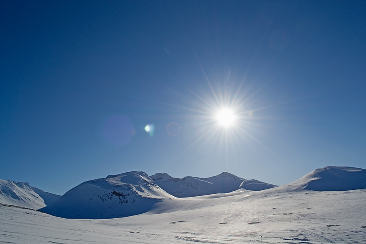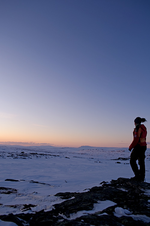 Så finns det dagarna som idag när man alldeles häpen på något viss lyckas ta sig till jobbet med hakan hängande vid knäna för himlen är blå och solen tindrande. När man åtta timmar senare inser att det fortfarande är solsken och man förmår sig ingenting annat än att gräva sig en solgropp och stanna där några timmar. För att efter middagen skida ensam uppåt och bara njuta av stillheten, tystnaden och de ljuva färgerna som solnedgången målar landskapet med. Få vända och med några svängar ta sig åter och njuta utav vetskapen att stationen är fullbelagd och här skidar jag omkring, ensam på fjället…