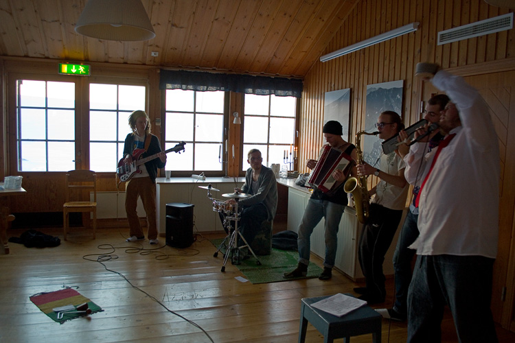 Den där dagen när vi satt ute i en snödriva och lät kvällssolen smeka våra kinder och med varsin kåsa vin satt vi där och bara hade det bra. Senare samma kväll spela Partiet på vår fjällstation, i matsalen gungade hälften av gästerna loss till go reggae. Vi åt tårta senare samma kväll och dagen därpå skida jag med bandet ner till Storulvån och Fjällfest.