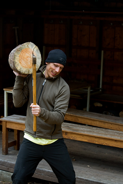 Det ska huggas ved och det ska vara lite manligt också. Det är härligt att hänga med grabbarna.