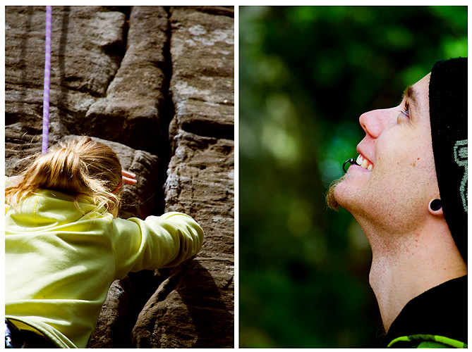 Kollektivt tog jag mig ner till Göteborg, på Centralen träffa jag henne och vi åkte pendeltåg till Lerum. Buss vidare, en liten paus hemma hos och så en kort promenad. Så stod vi där framför klipporna och bara log i solskenet.