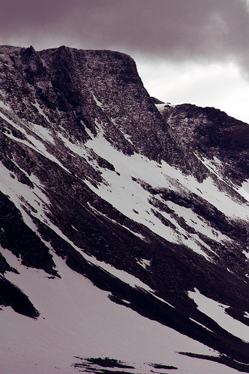 Det nygröna mot snön och de mörka bergen.