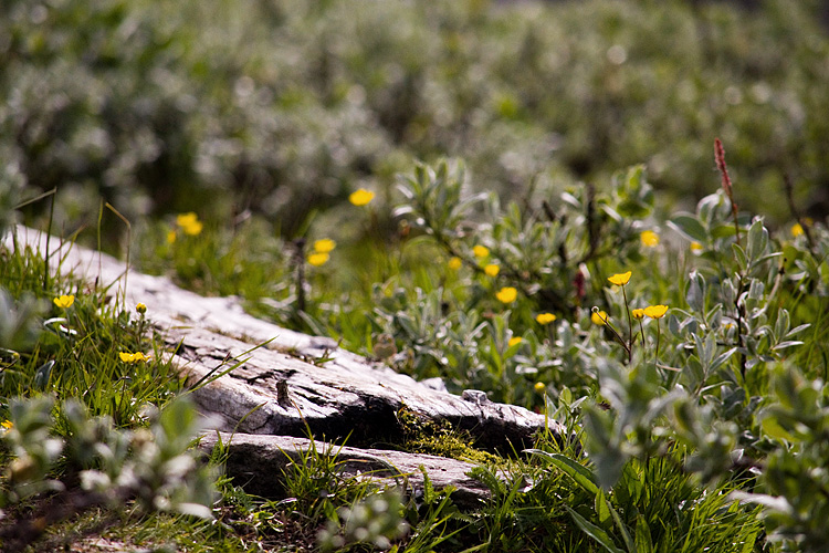 Men jag somnar på rygg uppe i massivet. Traskar sakta ner, tillbaka mot stationen. Håret flyger åt alla håll och det irriterar, men någonstans letar sig ett leende fram. Det lite kärva, motvind som medvind så gillar jag det. Blockstensterrängen, myrmarkerna och snöfälten, jag gillar dem. När jag kommer in kryper jag upp i sängen, slår på en film och jag somnar direkt. När jag kliver ut ur rummet igen övervälls jag med glädje och värme, det dåliga humöret har jag tappat någonstans för ett tag sedan och det är som det brukar – nästan lite för bra.