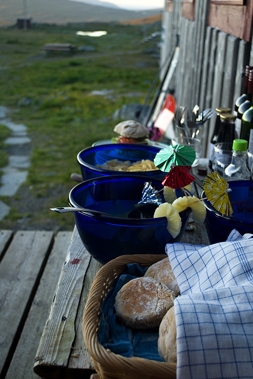 I söndags möttes jag utav ett soligt fjäll, en långsam löptur hem och glada vänner. När vi så stängt receptionen för dagen var grillen redan tänd och det var uppdukat till fest utomhus. Tillsammans allihopa.
