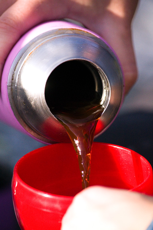 Det blir en kopp kaffe innan vi går och blåbärsplockning på vägen tillbaka.