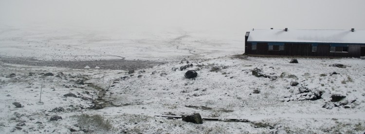 Att står där, blicka ut över fjället och fundera över vilken årstid var det nu igen.