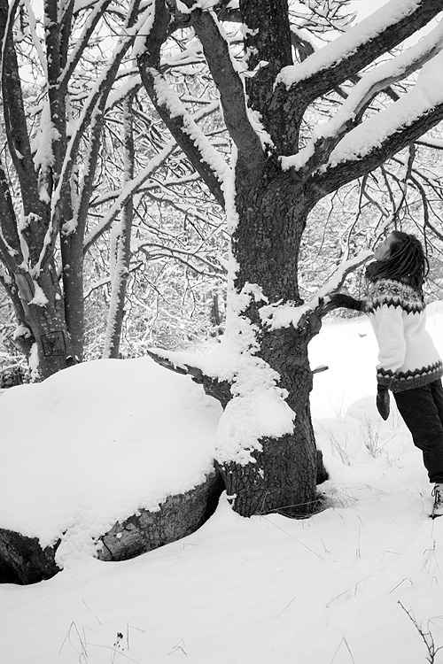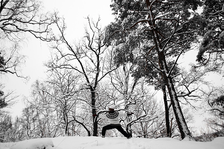 Jag trycker in knappen, beredd att hinna bort till trädet innan kameran klickar till. Men när jag tar första steget missar jag inte stenen som gömt sig under snön, snubblar till och parerar. Återfår balansen för att i nästa steg snubbla till på nästa sten. Jag är på väg ner mot den snötäckta marken, skvätter snö men lyckas komma på benen samtidigt som kameran säger klosch.