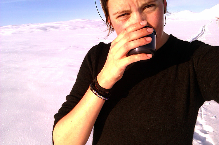 Jag viker av från leden mot Blåhammaren strax innan raststugan vid Ulvåtjärn, tar vänster över orörda marker tills jag möter upp leden mot Enkälen. Jag stannar till, drick lite varmt och låter vindsäcken ligga kvar i ryggsäcken för vinden är stilla. Solen skiner sitt allra största leende och ärmarna kavlas upp.