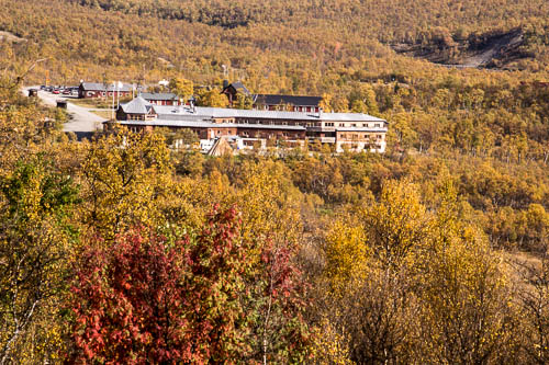 Innan stigningen börjar kännas i benen svänger jag ut i björkskogen. Tidigare höstar har jag hittat några små gyllene skönheter bland mossa, blåbärsris och gräs. Med tanke på läget trodde jag att många redan visste om detta härliga smultronställe. Men en efter en dök de upp ur vegetationen, bara 50 meter från stigen där många många besökare trampat bara denna höst. Jag fyller min tomma pappersgodispåse med aningen solblekta men ack så fina kantareller och fortsätter på stigen mot kalfjället. Jag vänder mig om och ser Storulvåns fjällstation fullkomligt bada i ett hav av gula löv och vägen mot civilisationen som likt en kraftig lina tycks hålla kvar stationen från att inte flyta längre ut på fjället.