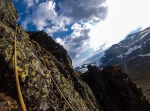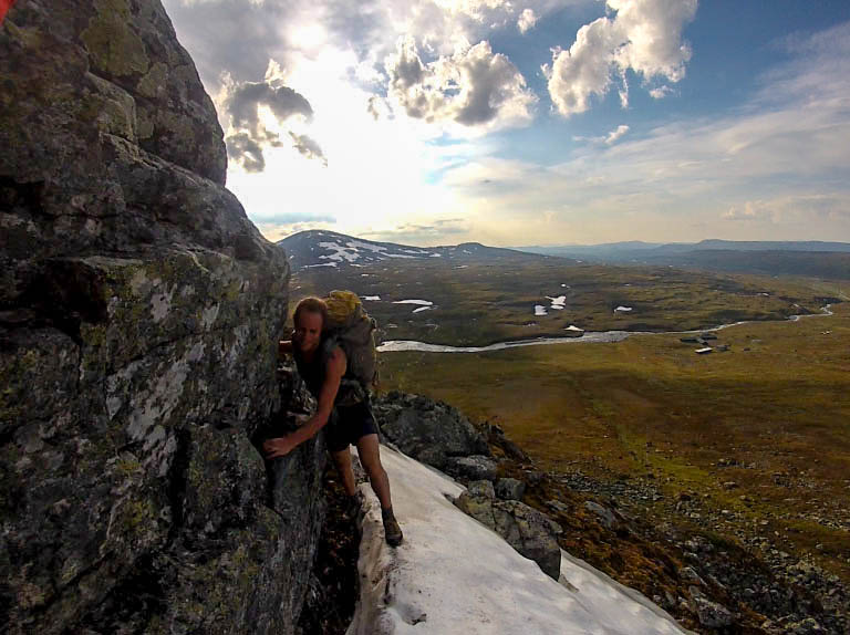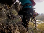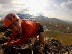 Jag tog med mig GoPro:n och Gustaf tog med mig upp i 7:an på Herrklumpen. I ryggsäckarna hade vi packat rep, kammar och annat klätterskrot. Blommorna vilade i solskenet på branternas grönare sluttningar och molnen dansade över massivet.
