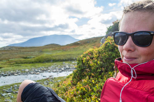 Så plötsligt slår den till, tröttheten. Som en vägg. Jag lirkar fram nöd-kexchokladen och i farten försvinner den fort. Solen ler mot mig och jag ler tillbaka, för med denna enkelhet och dessa vidsträckta vyerna går det inte att göra annat. Det har blivit tidig höst i Jämtlandsfjällen och livet är både vackert och enkelt.