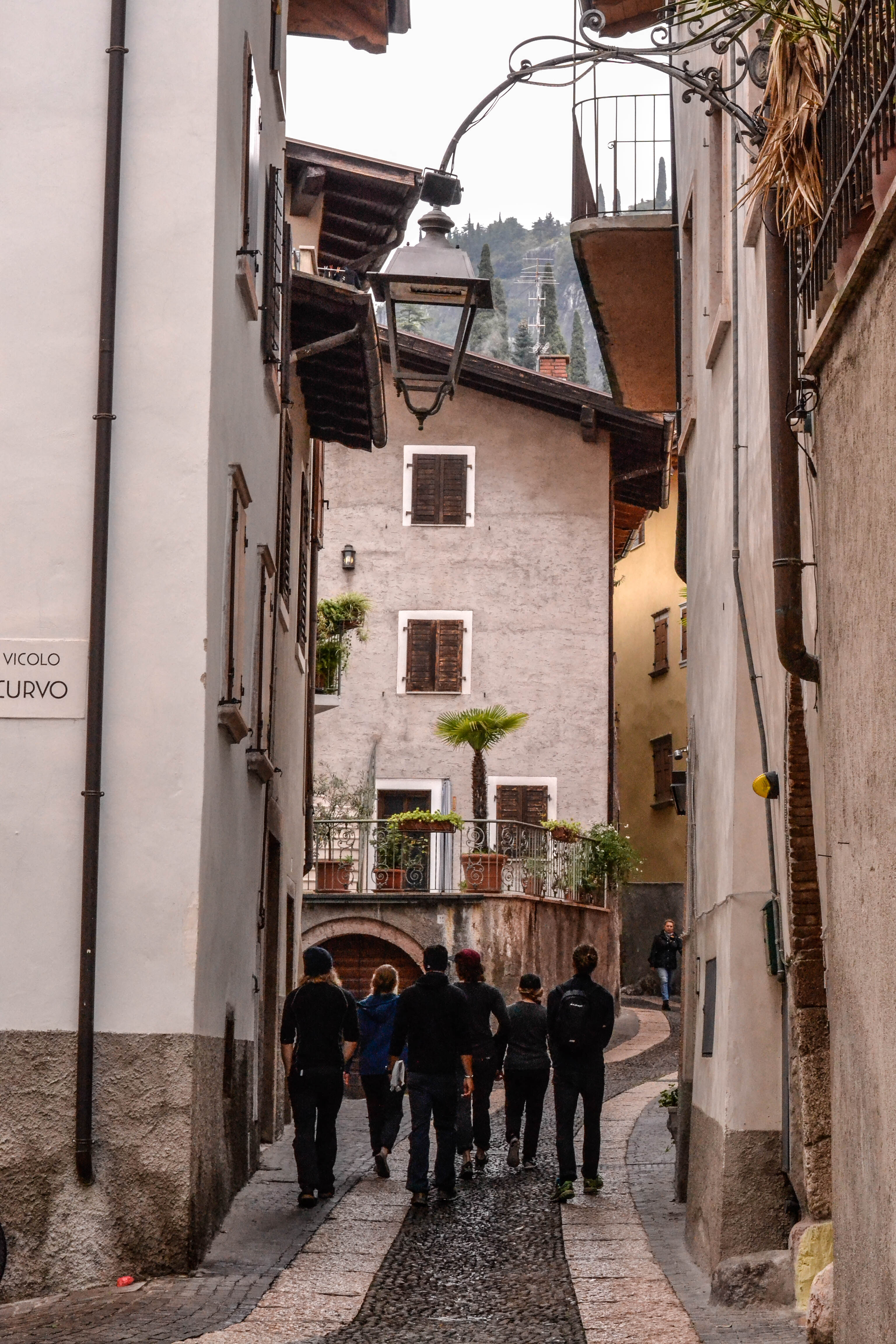 På klätterresa med regntunga moln.