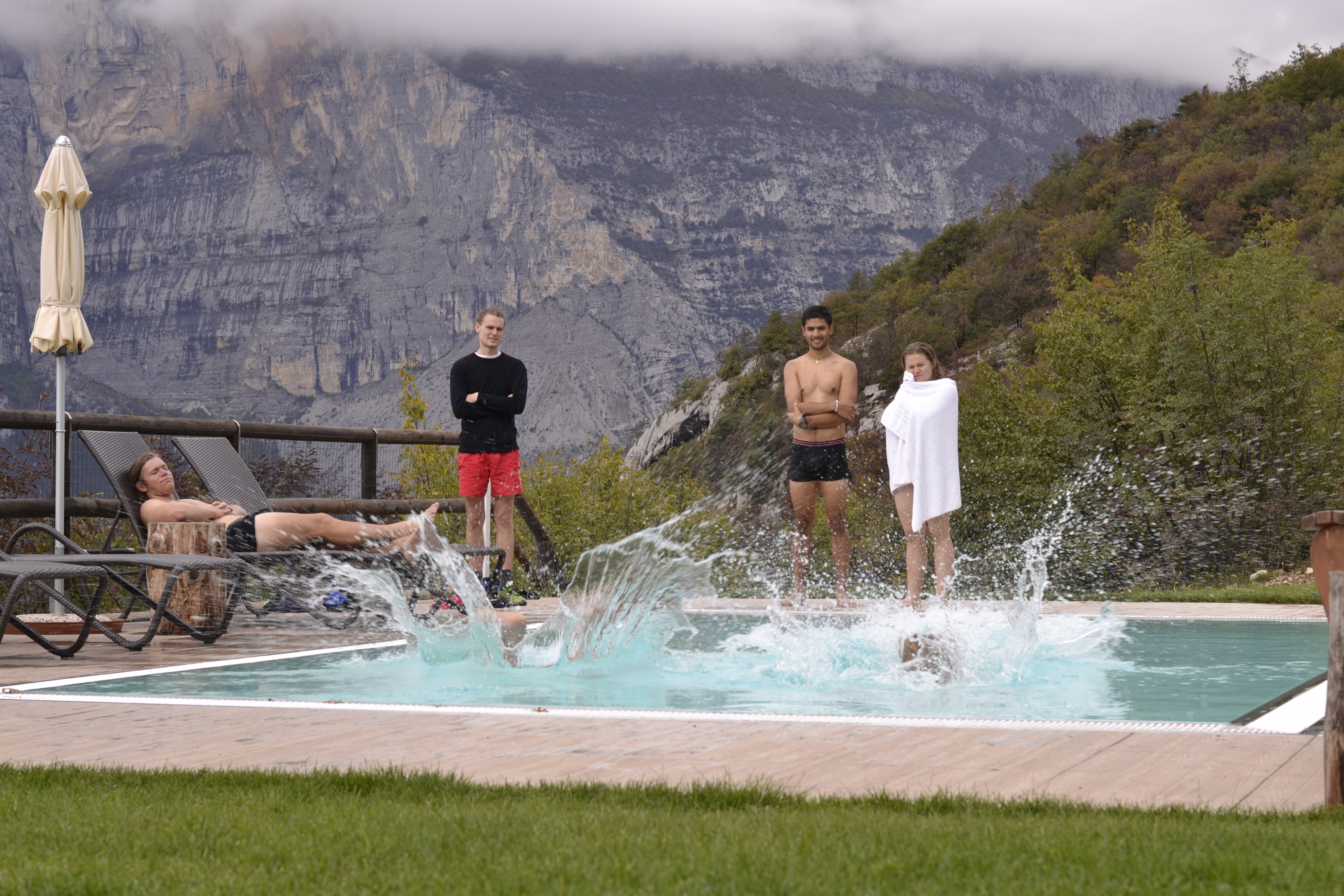 På klätterresa med regntunga moln.