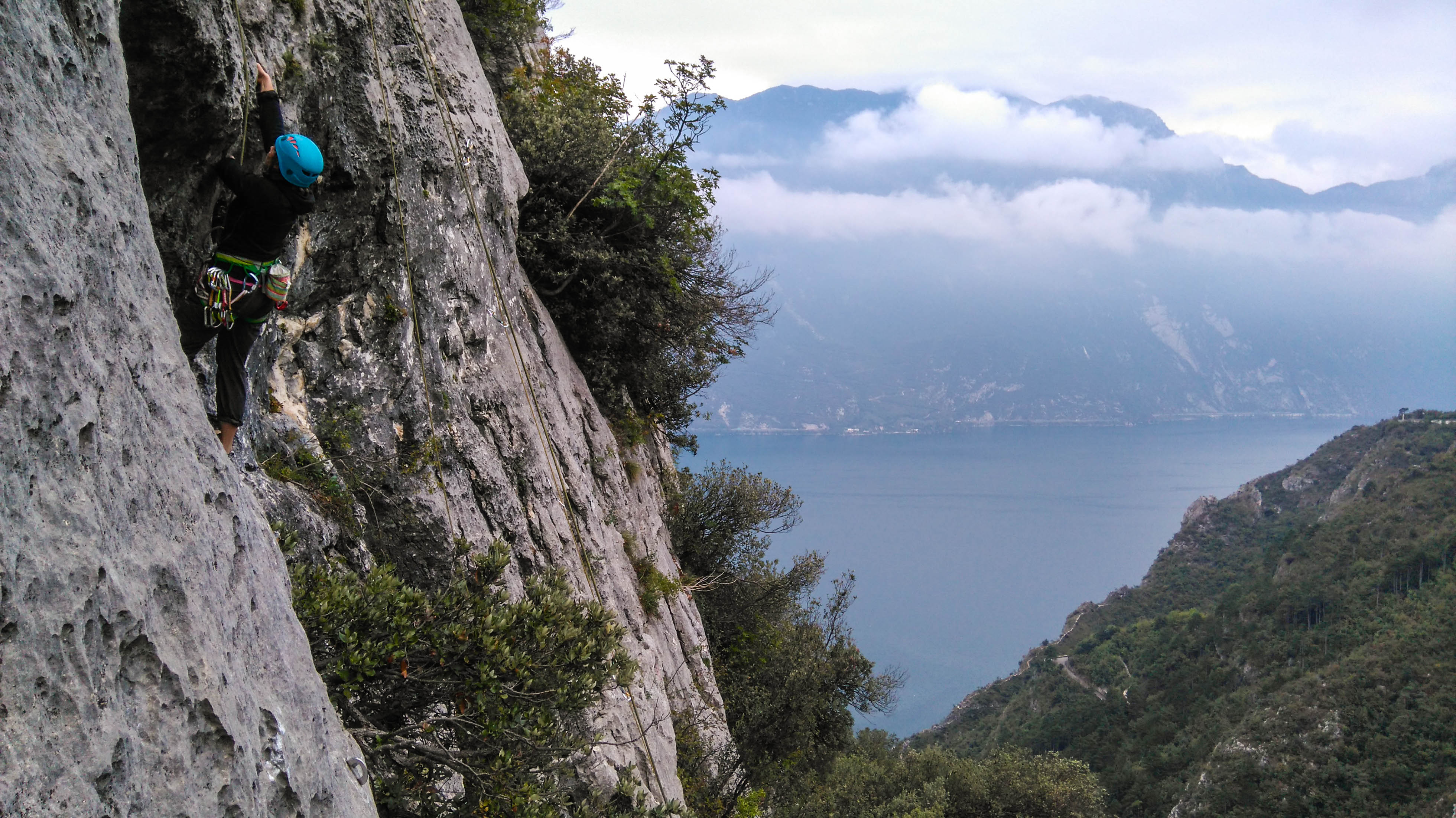 På klätterresa med regntunga moln.